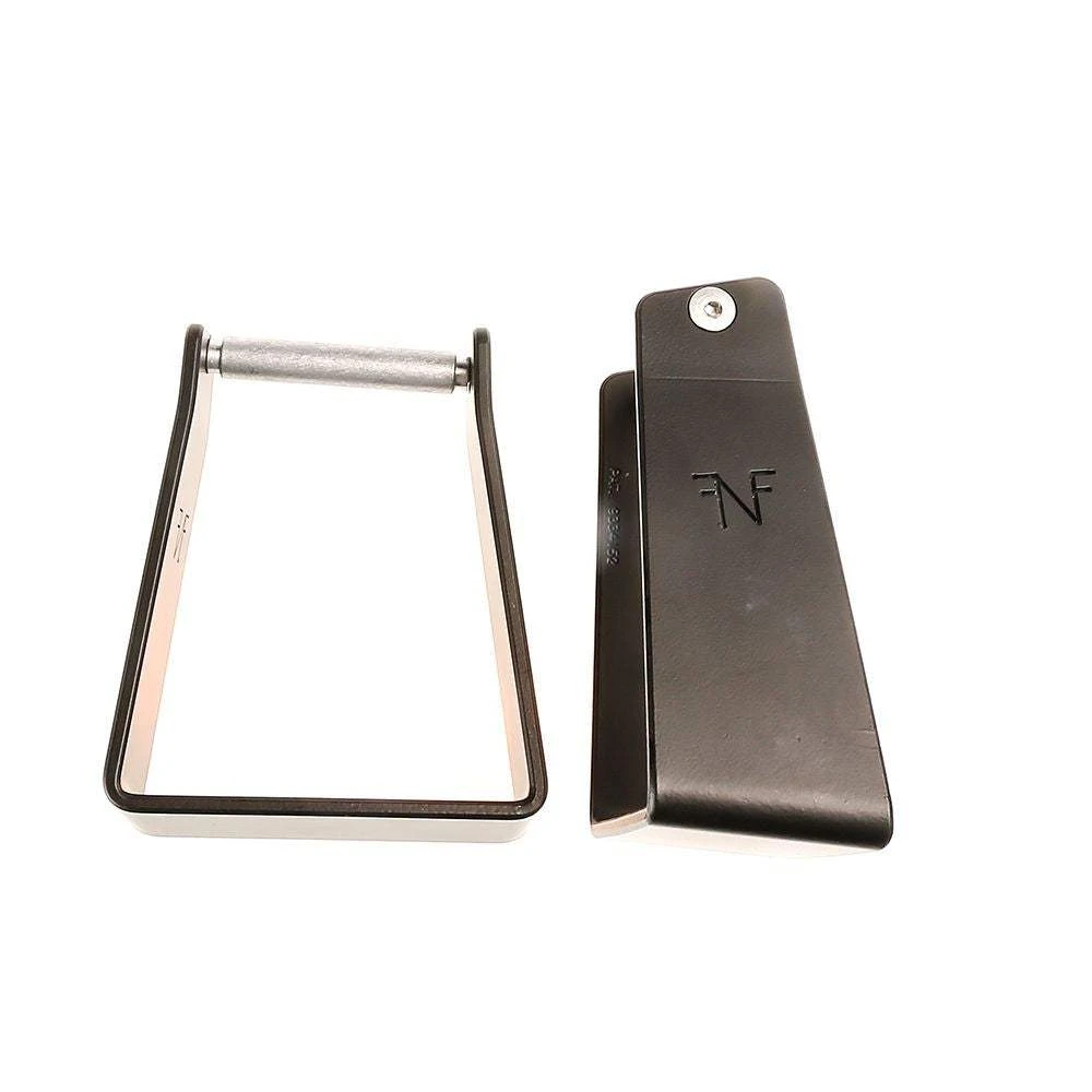 Fast N Forward Stirrups are proudly made in the USA and are designed with a forward angle to help you keep your toes down. Having your toes down allows you to maintain proper balance and position throughout your run. The Patented design helps to keep your feet slightly behind your hips, giving you an athletic stance in your saddle. The forward angle also helps to prevent you from losing your stirrup during the run. FNF Stirrups have been proven effective by many team ropers.