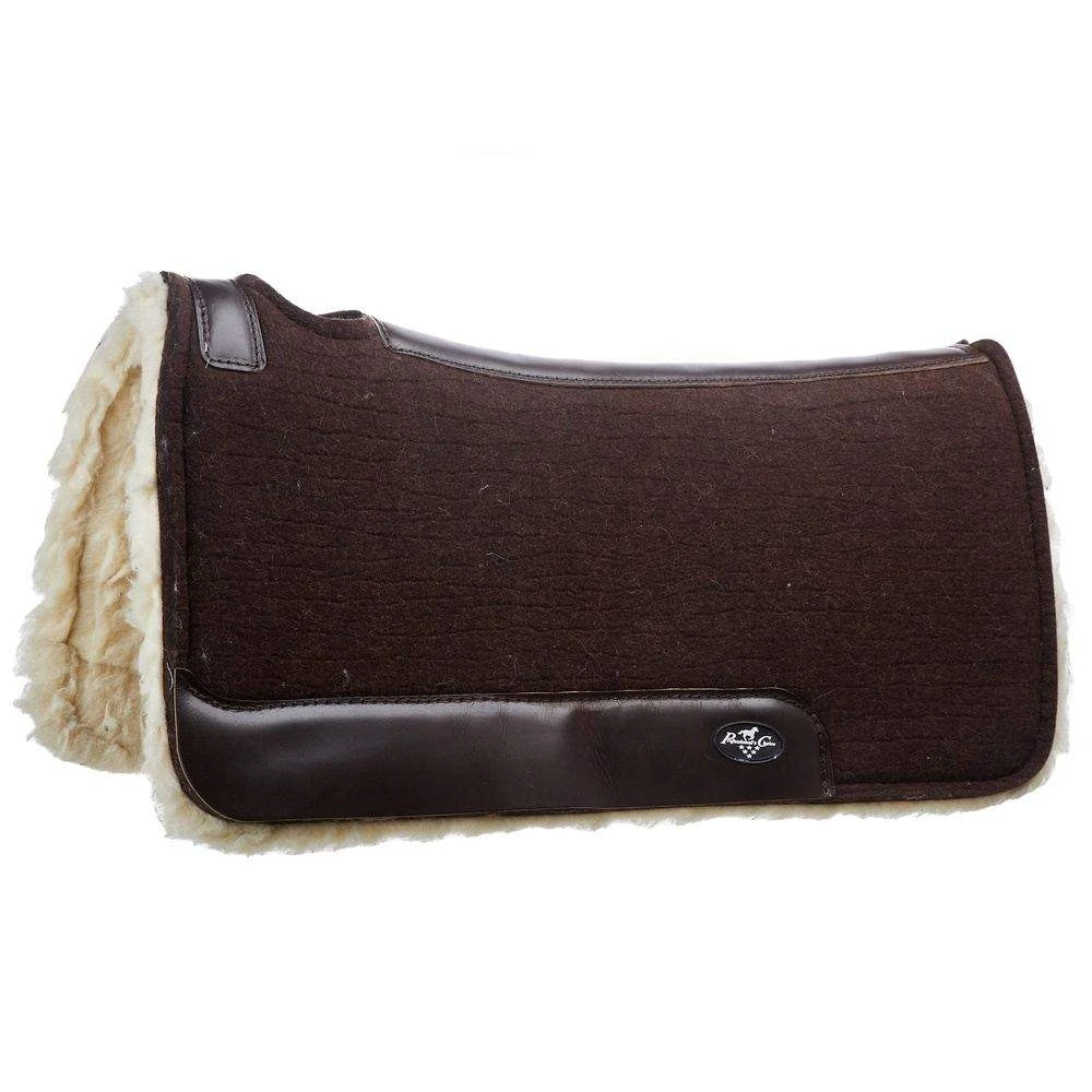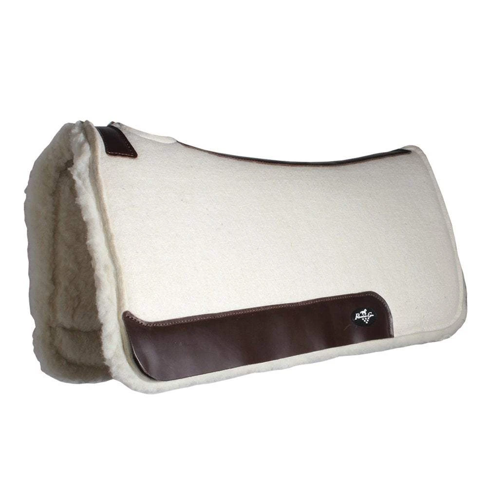 Professional’s Choice steam pressed tan saddle pad with merino wool bottom. Contoured design provides anatomicaaly correct fit and helps keep the saddle in place. Channel down the spine provides pressure relief and allows air flow.